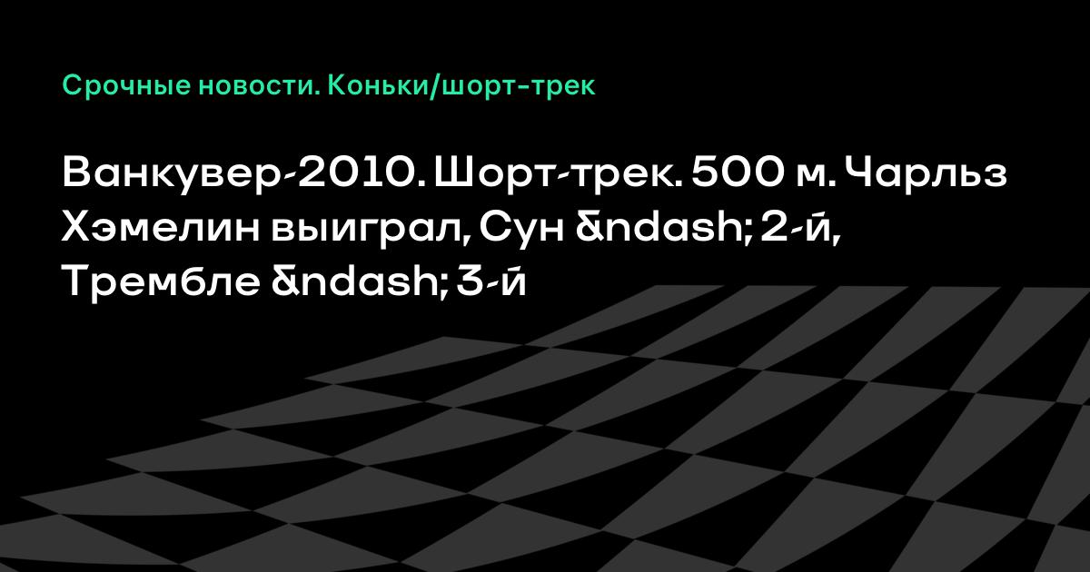 Ванкувер-2010. Шорт-трек. 500 м. Чарльз Хэмелин выиграл, Сун – 2-й, Трембле – 3-й