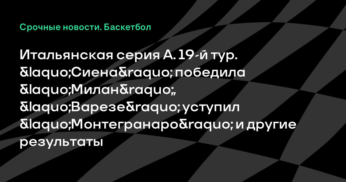Итальянская серия А. 19-й тур. «Сиена» победила «Милан», «Варезе» уступил «Монтегранаро» и другие результаты
