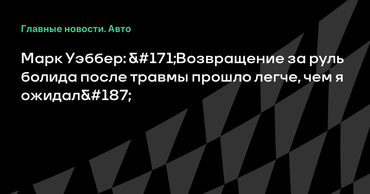Марк Уэббер: «Возвращение за руль болида после травмы прошло легче, чем я ожидал»