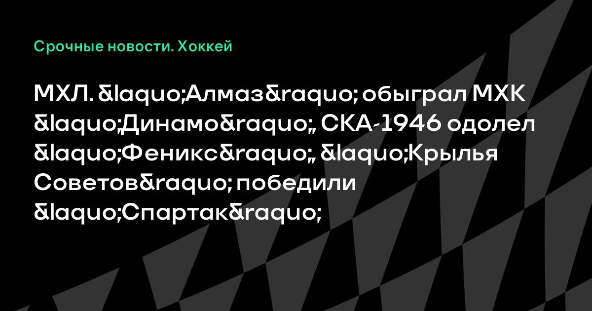 МХЛ. «Алмаз» обыграл МХК «Динамо», СКА-1946 одолел «Феникс», «Крылья Советов» победили «Спартак»
