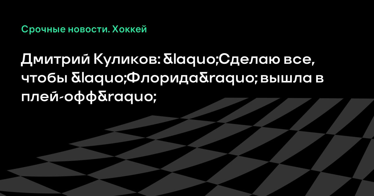 «Для меня каждый матч чемпионата это игра плей-офф. Я просто выхожу на лед и стараюсь показывать свой лучший хоккей. У «Флориды» остались шансы на выход в плей-офф, и я сделаю все, чтобы помочь команде добиться цели», приводит слова Куликова официальный сайт клуба.