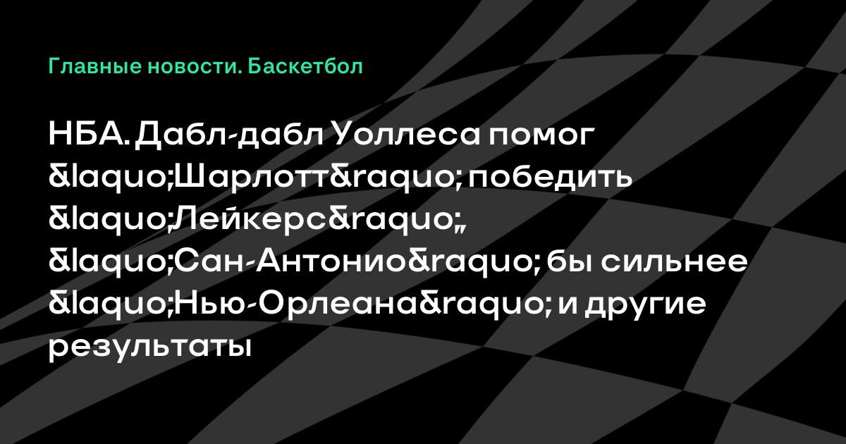 НБА. Дабл-дабл Уоллеса помог «Шарлотт» победить «Лейкерс», «Сан-Антонио» бы сильнее «Нью-Орлеана» и другие результаты