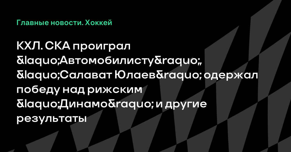 КХЛ. СКА проиграл «Автомобилисту», «Салават Юлаев» одержал победу над рижским «Динамо» и другие результаты