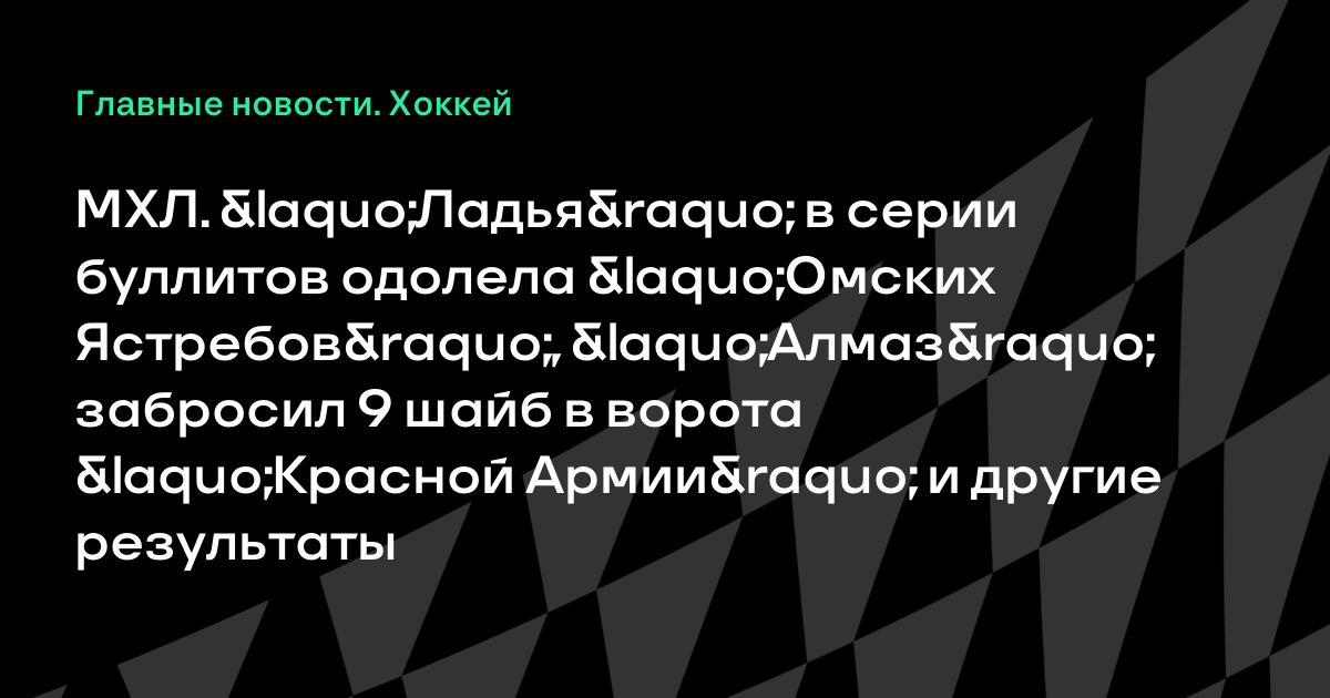 МХЛ. «Ладья» в серии буллитов одолела «Омских Ястребов», «Алмаз» забросил 9 шайб в ворота «Красной Армии» и другие результаты