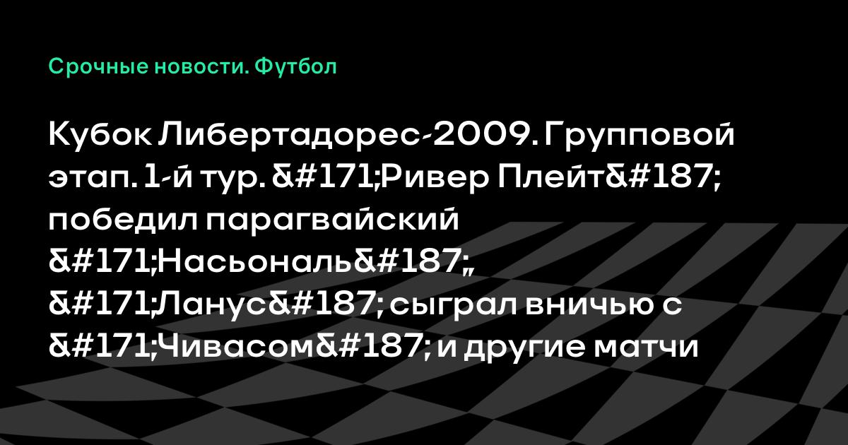 Кубок Либертадорес-2009. Групповой этап. 1-й тур. «Ривер Плейт» победил парагвайский «Насьональ», «Ланус» сыграл вничью с «Чивасом» и другие матчи