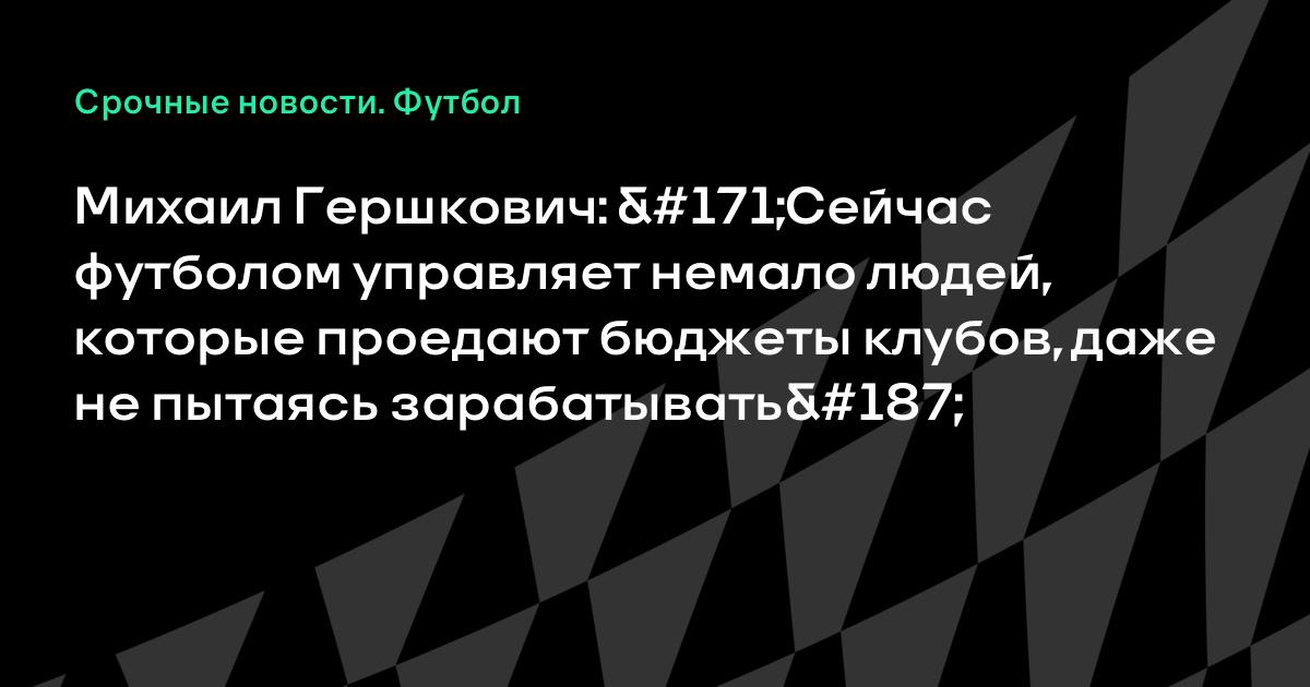 Михаил Гершкович: «Сейчас футболом управляет немало людей, которые проедают бюджеты клубов, даже не пытаясь зарабатывать»
