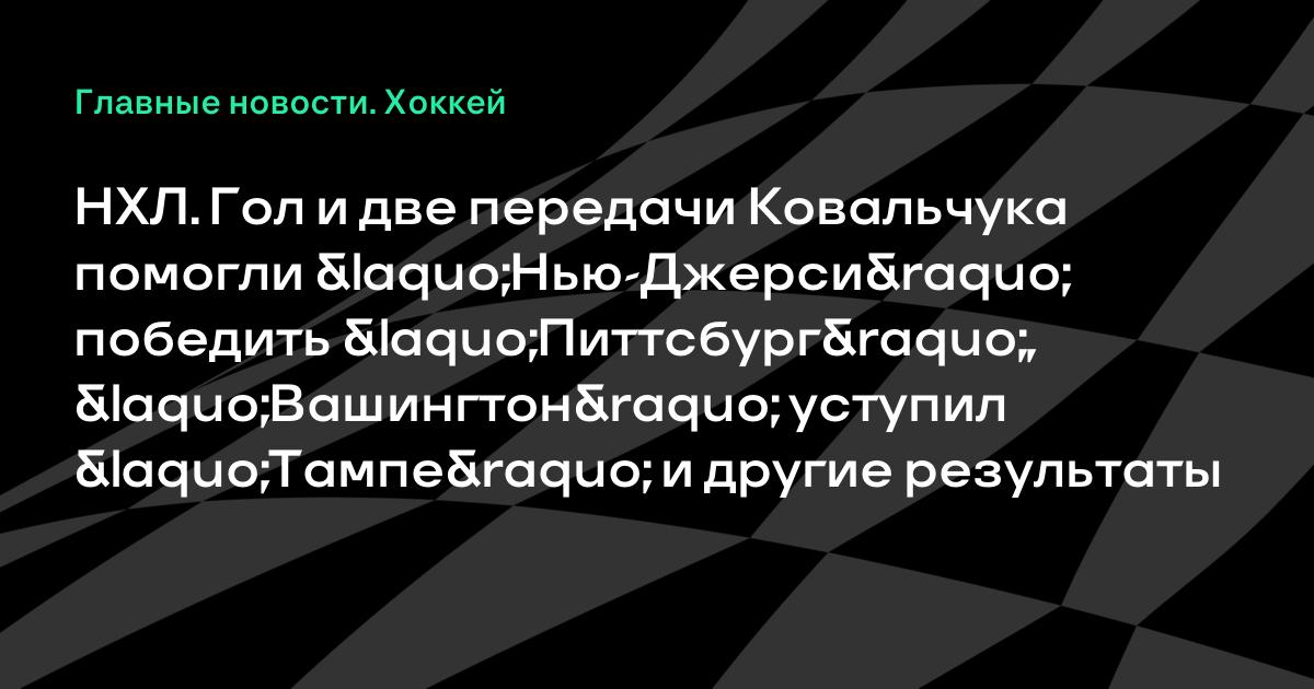 НХЛ. Гол и две передачи Ковальчука помогли «Нью-Джерси» победить «Питтсбург», «Вашингтон» уступил «Тампе» и другие результаты