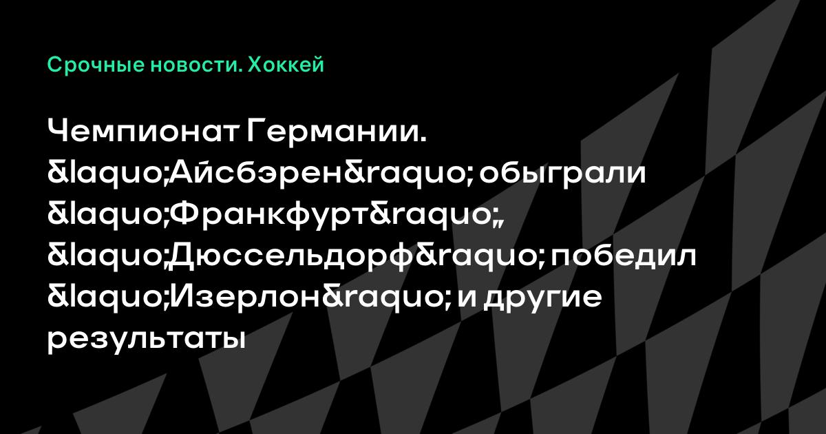 Чемпионат Германии. «Айсбэрен» обыграли «Франкфурт», «Дюссельдорф» победил «Изерлон» и другие результаты