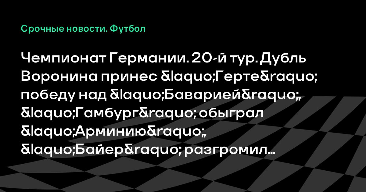 Чемпионат Германии. 20-й тур. Дубль Воронина принес «Герте» победу над «Баварией», «Гамбург» обыграл «Арминию», «Байер» разгромил «Хоффенхайм» и другие результаты