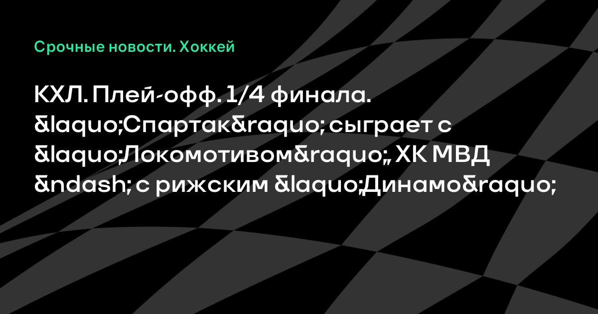 КХЛ. Плей-офф. 1/4 финала. «Спартак» сыграет с «Локомотивом», ХК МВД – с рижским «Динамо»