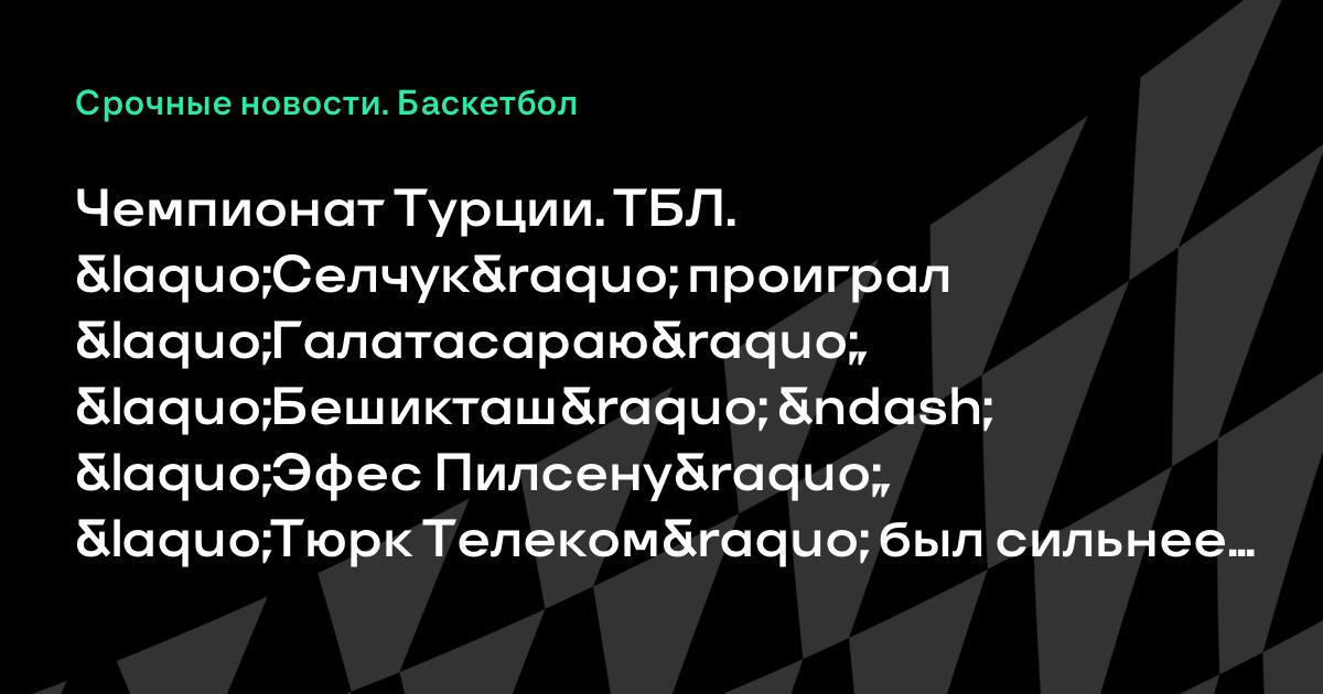 Чемпионат Турции. ТБЛ. «Селчук» проиграл «Галатасараю», «Бешикташ» – «Эфес Пилсену», «Тюрк Телеком» был сильнее «Кепеза» и другие результаты