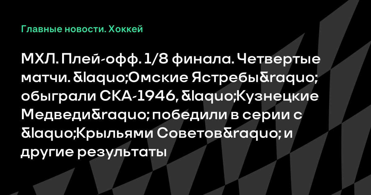 МХЛ. Плей-офф. 1/8 финала. Четвертые матчи. «Омские Ястребы» обыграли СКА-1946, «Кузнецкие Медведи» победили в серии с «Крыльями Советов» и другие результаты