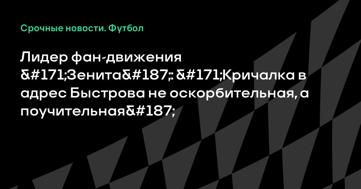 Лидер фан-движения «Зенита»: «Кричалка в адрес Быстрова не оскорбительная, а поучительная»