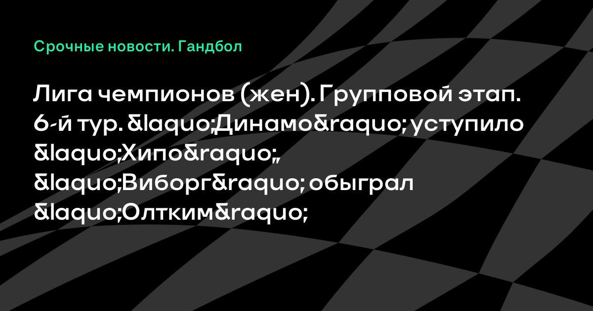Лига чемпионов (жен). Групповой этап. 6-й тур. «Динамо» уступило «Хипо», «Виборг» обыграл «Олтким»