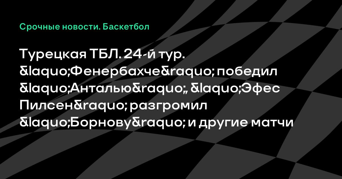 Турецкая ТБЛ. 24-й тур. «Фенербахче» победил «Анталью», «Эфес Пилсен» разгромил «Борнову» и другие матчи