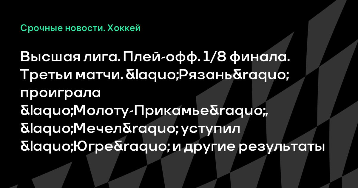 Высшая лига. Плей-офф. 1/8 финала. Третьи матчи. «Рязань» проиграла «Молоту-Прикамье», «Мечел» уступил «Югре» и другие результаты