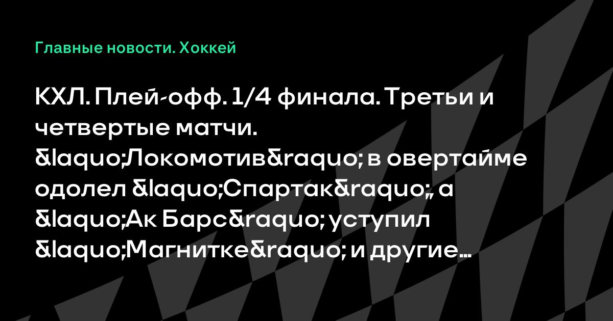 КХЛ. Плей-офф. 1/4 финала. Третьи и четвертые матчи. «Локомотив» в овертайме одолел «Спартак», а «Ак Барс» уступил «Магнитке» и другие результаты