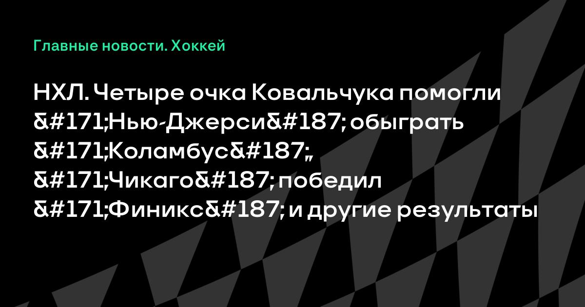 НХЛ. Четыре очка Ковальчука помогли «Нью-Джерси» обыграть «Коламбус», «Чикаго» победил «Финикс» и другие результаты