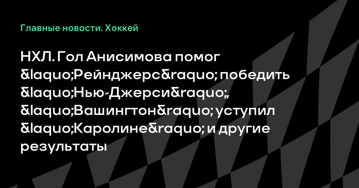 НХЛ. Гол Анисимова помог «Рейнджерс» победить «Нью-Джерси», «Вашингтон» уступил «Каролине» и другие результаты