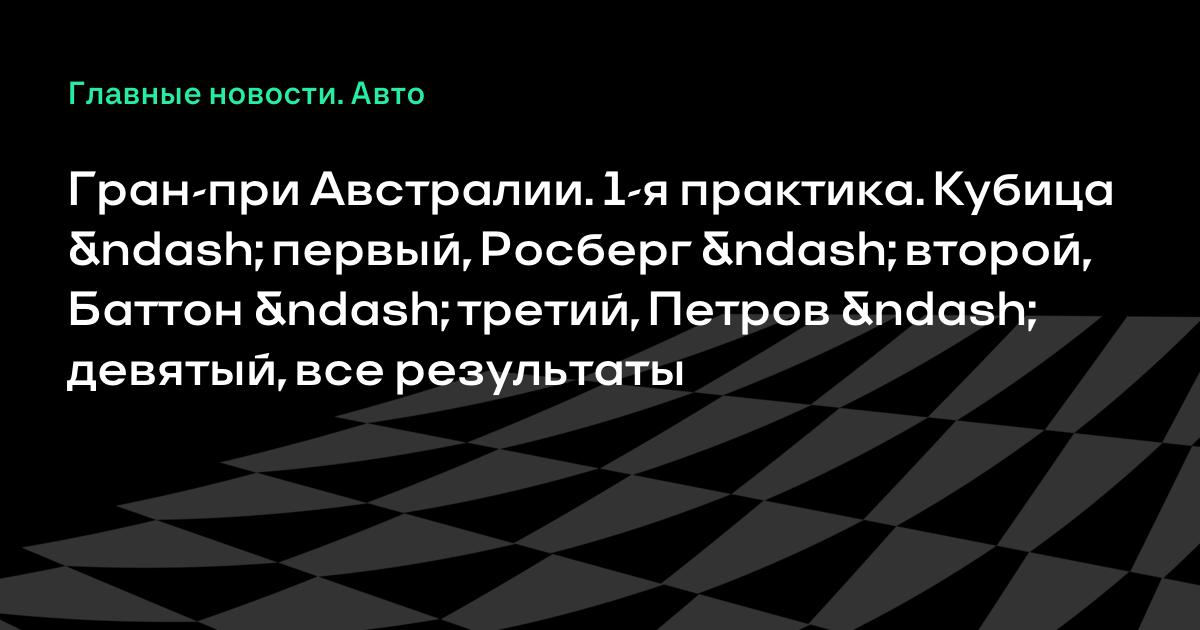 Гран-при Австралии. 1-я практика. Кубица – первый, Росберг – второй, Баттон – третий, Петров – девятый, все результаты