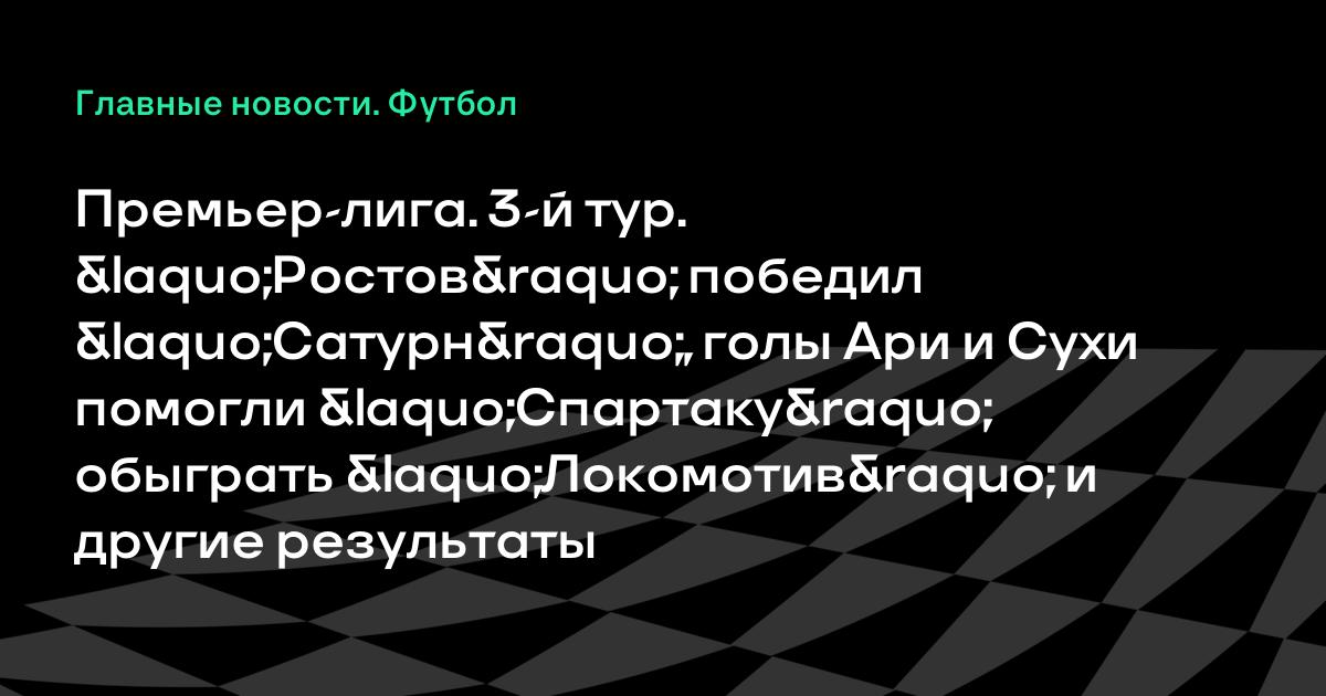 Премьер-лига. 3-й тур. «Ростов» победил «Сатурн», голы Ари и Сухи помогли «Спартаку» обыграть «Локомотив» и другие результаты
