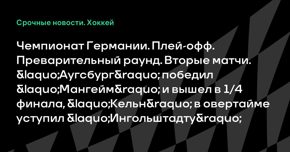 Чемпионат Германии. Плей-офф. Преварительный раунд. Вторые матчи. «Аугсбург» победил «Мангейм» и вышел в 1/4 финала, «Кельн» в овертайме уступил «Ингольштадту»