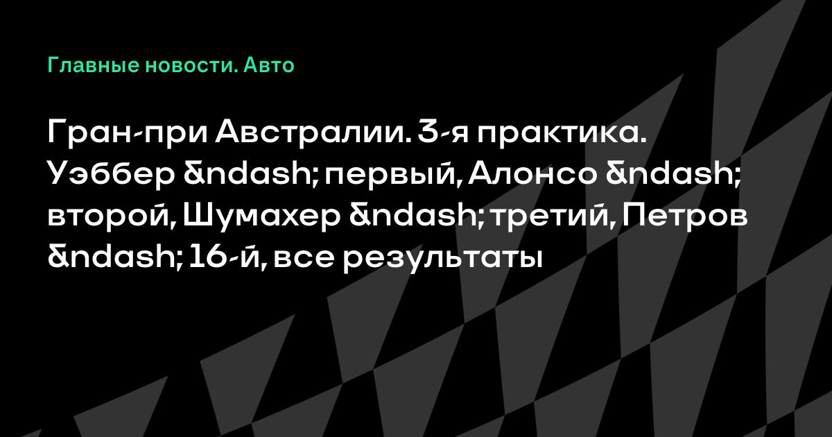 Гран-при Австралии. 3-я практика. Уэббер – первый, Алонсо – второй, Шумахер – третий, Петров – 16-й, все результаты