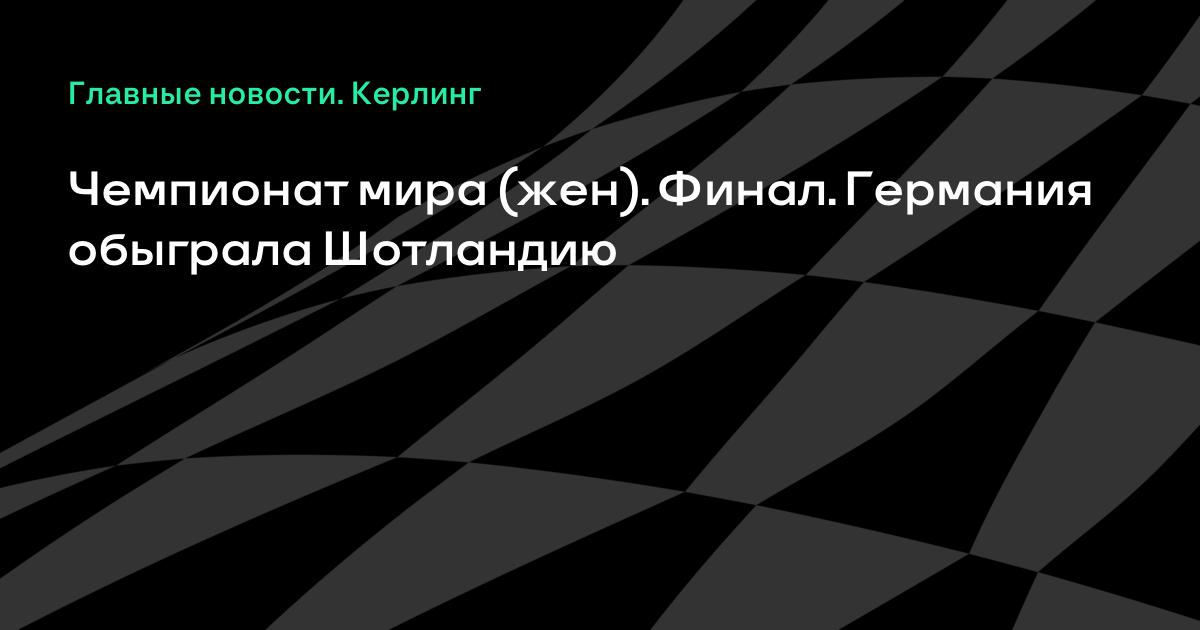 29 марта 2010, 07:06 Чемпионат мира (жен). Финал. Германия обыграла Шотландию Чемпионат мира Свифт Каррент, Канада Финал Шотландия Германия 6:8 Матч за третье место Канада Швеция 9:6 Керлинг сборная Шотландии жен результаты чемпионат мира жен сборная Швеции жен сборная Германии жен сборная Канады жен