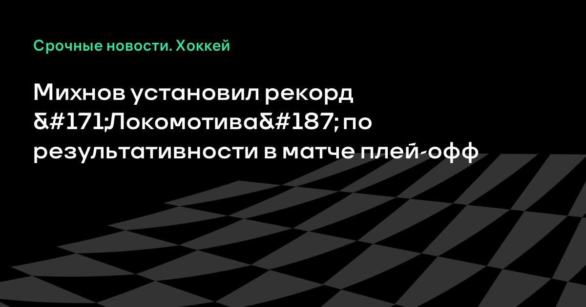 Форвард «Локомотива» Алексей Михнов в шестой игре серии 1/4 финала плей-офф КХЛ со «Спартаком» (8:1) набрал 5 (2+3) очков. Таким образом, хоккеист установил новый клубный рекорд результативности в матче плей-офф. Прежнее достижение составляло 4 очка и покорялось Андрею Коваленко, Збынеку Ирглу и Алексею Яшину, сообщает официальный сайт КХЛ.