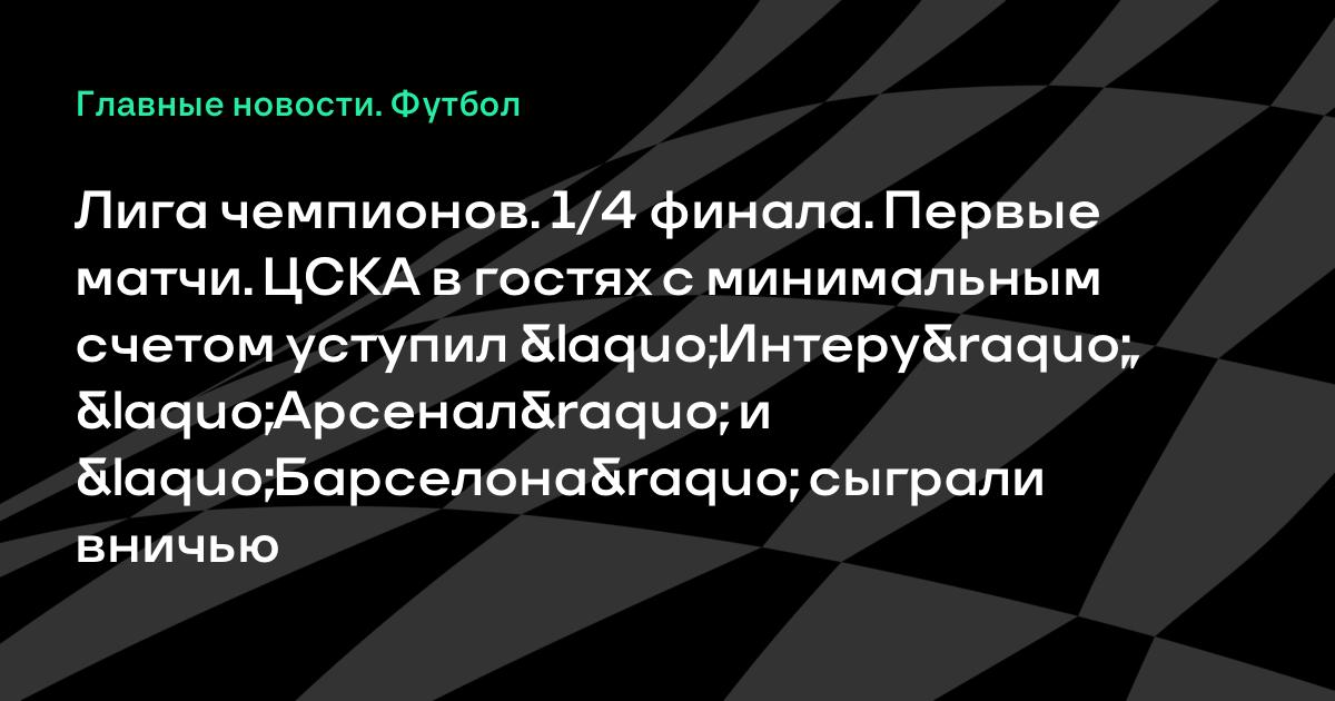 Лига чемпионов. 1/4 финала. Первые матчи. ЦСКА в гостях с минимальным счетом уступил «Интеру», «Арсенал» и «Барселона» сыграли вничью