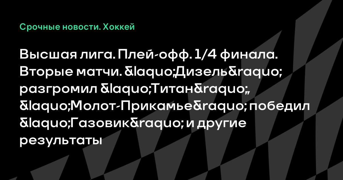 Высшая лига. Плей-офф. 1/4 финала. Вторые матчи. «Дизель» разгромил «Титан», «Молот-Прикамье» победил «Газовик» и другие результаты
