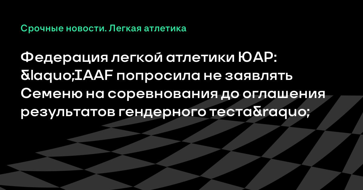 Федерация легкой атлетики ЮАР: «IAAF попросила не заявлять Семеню на соревнования до оглашения результатов гендерного теста»