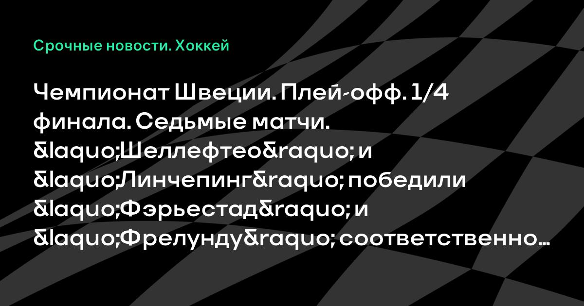 Чемпионат Швеции. Плей-офф. 1/4 финала. Седьмые матчи. «Шеллефтео» и «Линчепинг» победили «Фэрьестад» и «Фрелунду» соответственно и вышли в полуфинал