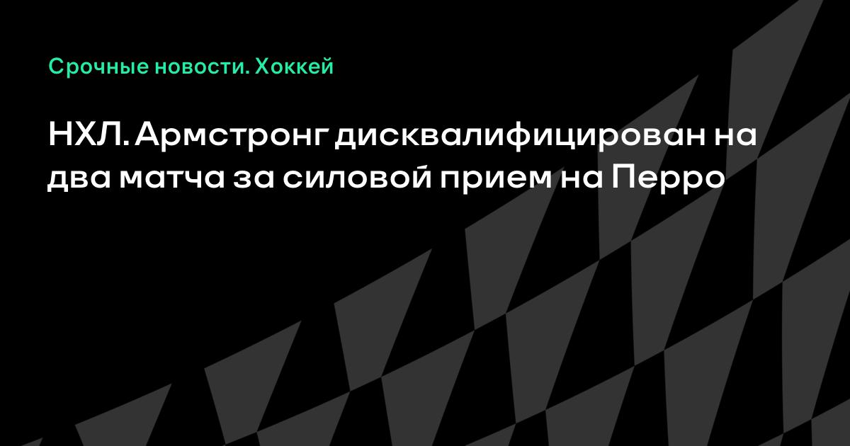 НХЛ. Армстронг дисквалифицирован на два матча за силовой прием на Перро