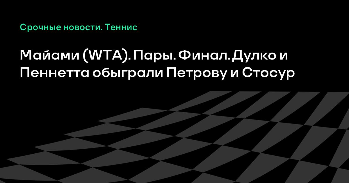 Майами (WTA). Пары. Финал. Дулко и Пеннетта обыграли Петрову и Стосур