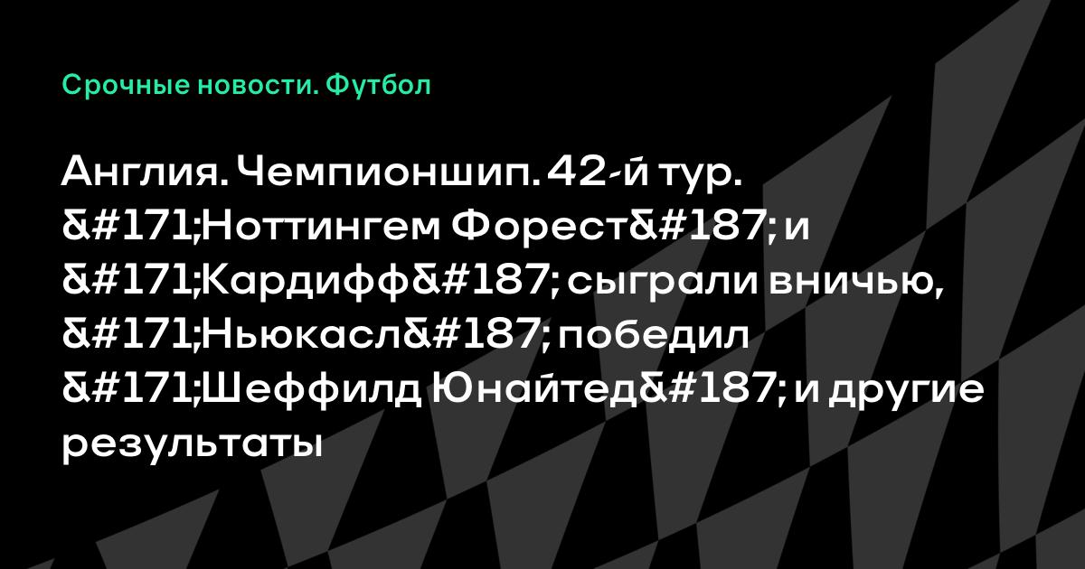 Англия. Чемпионшип. 42-й тур. «Ноттингем Форест» и «Кардифф» сыграли вничью, «Ньюкасл» победил «Шеффилд Юнайтед» и другие результаты