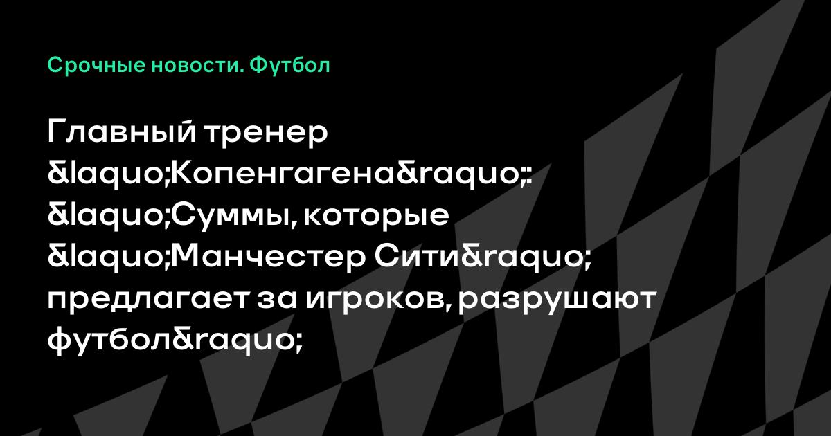 Главный тренер «Копенгагена»: «Суммы, которые «Манчестер Сити» предлагает за игроков, разрушают футбол»