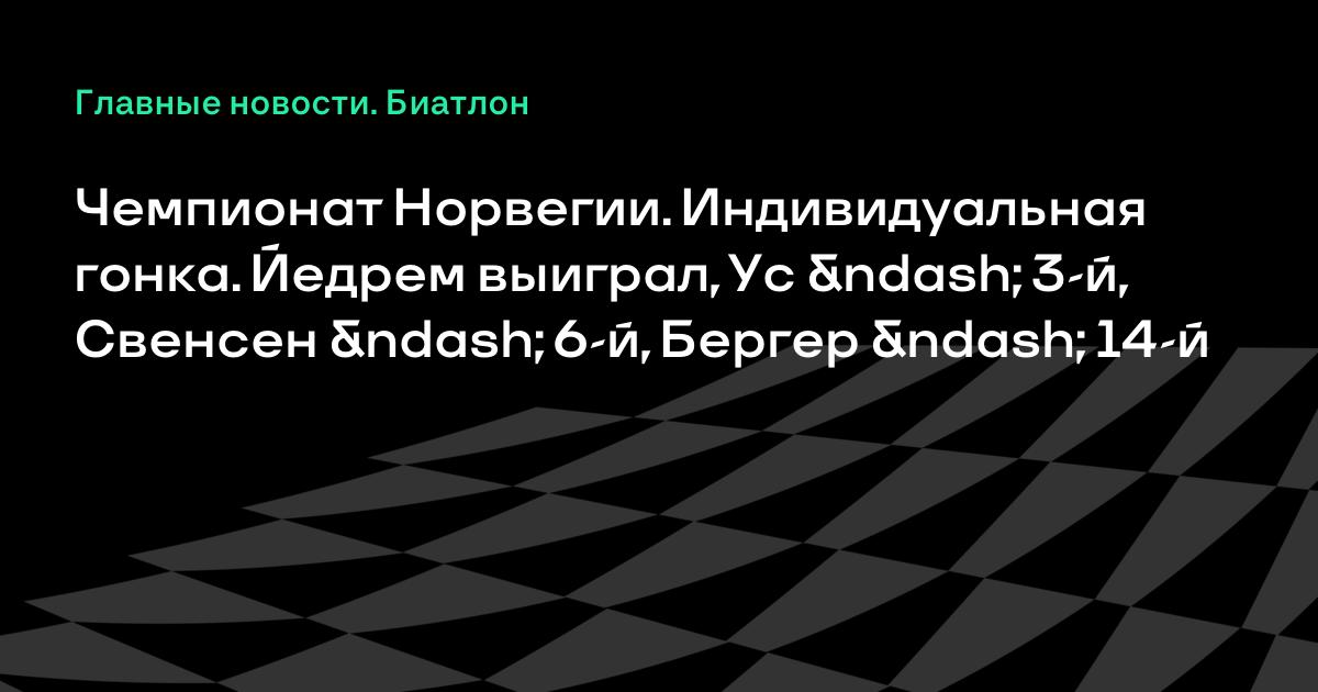 Чемпионат Норвегии. Индивидуальная гонка. Йедрем выиграл, Ус – 3-й, Свенсен – 6-й, Бергер – 14-й