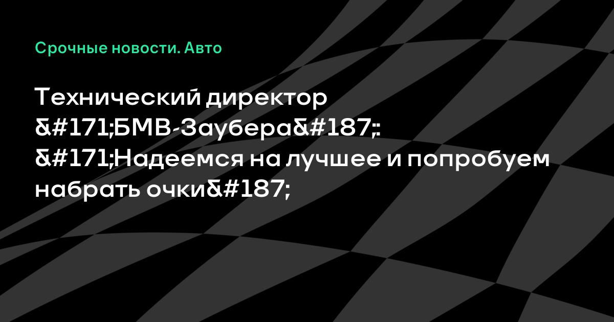 Технический директор «БМВ-Заубера»: «Надеемся на лучшее и попробуем набрать очки»