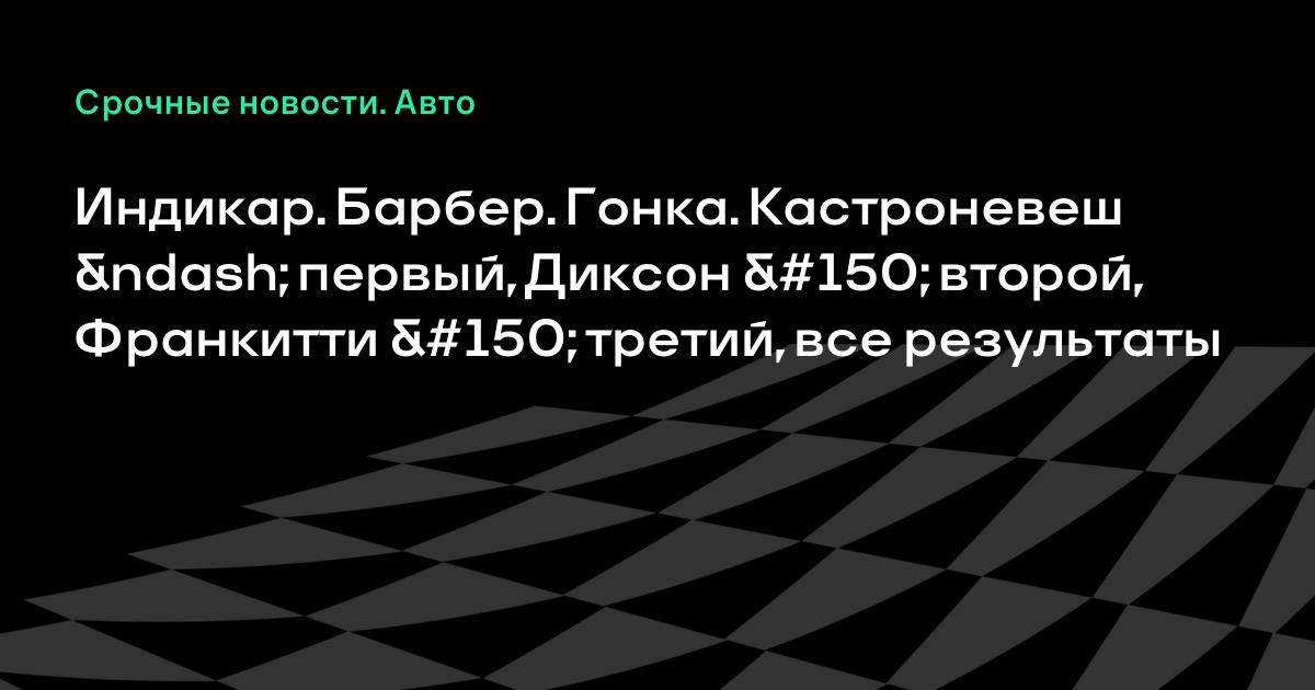 Индикар. Барбер. Гонка. Кастроневеш – первый, Диксон второй, Франкитти третий, все результаты