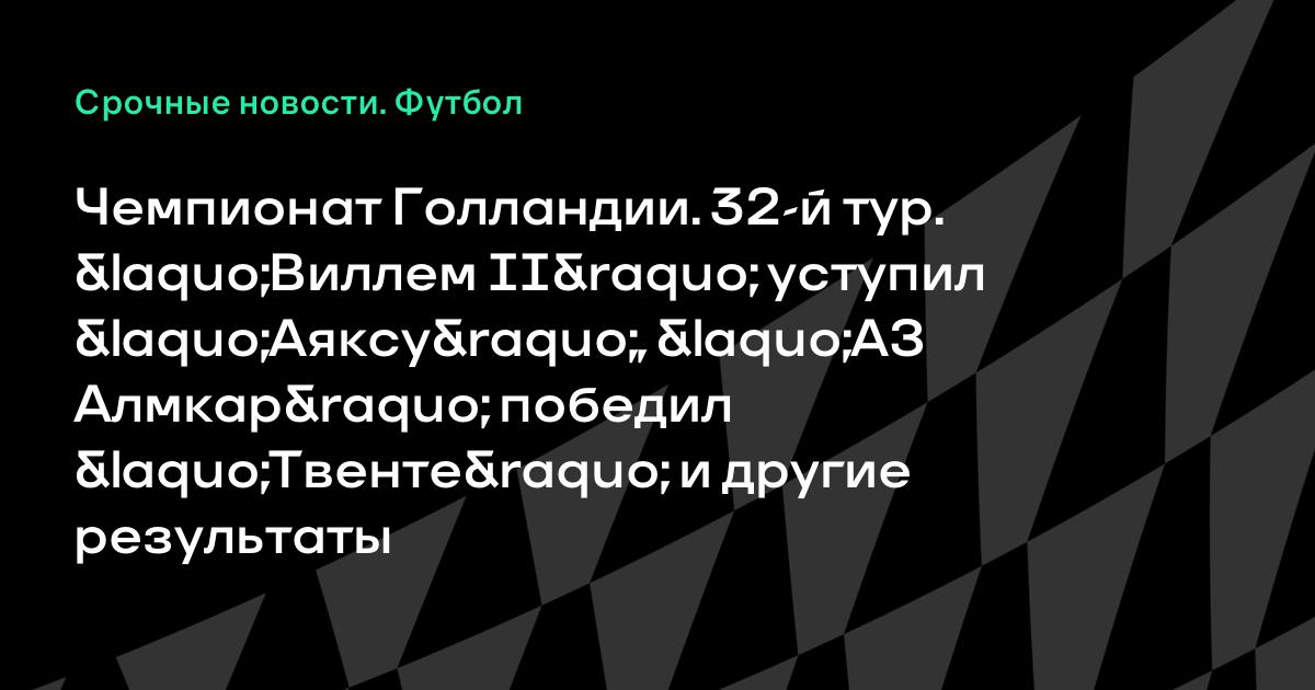 Чемпионат Голландии. 32-й тур. «Виллем II» уступил «Аяксу», «АЗ Алмкар» победил «Твенте» и другие результаты