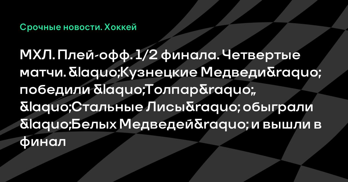 МХЛ. Плей-офф. 1/2 финала. Четвертые матчи. «Кузнецкие Медведи» победили «Толпар», «Стальные Лисы» обыграли «Белых Медведей» и вышли в финал