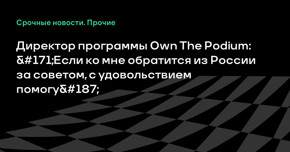 Директор программы Own The Podium: «Если ко мне обратится из России за советом, с удовольствием помогу»