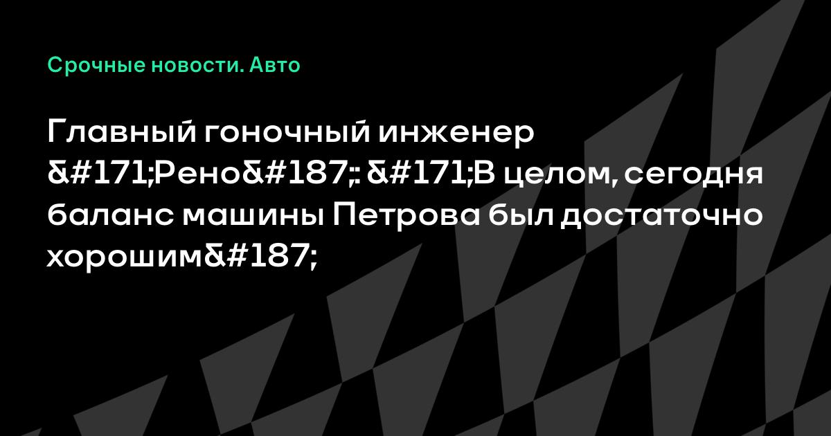 Главный гоночный инженер «Рено»: «В целом, сегодня баланс машины Петрова был достаточно хорошим»