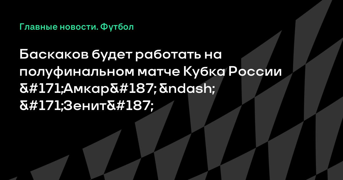Баскаков будет работать на полуфинальном матче Кубка России «Амкар» – «Зенит»
