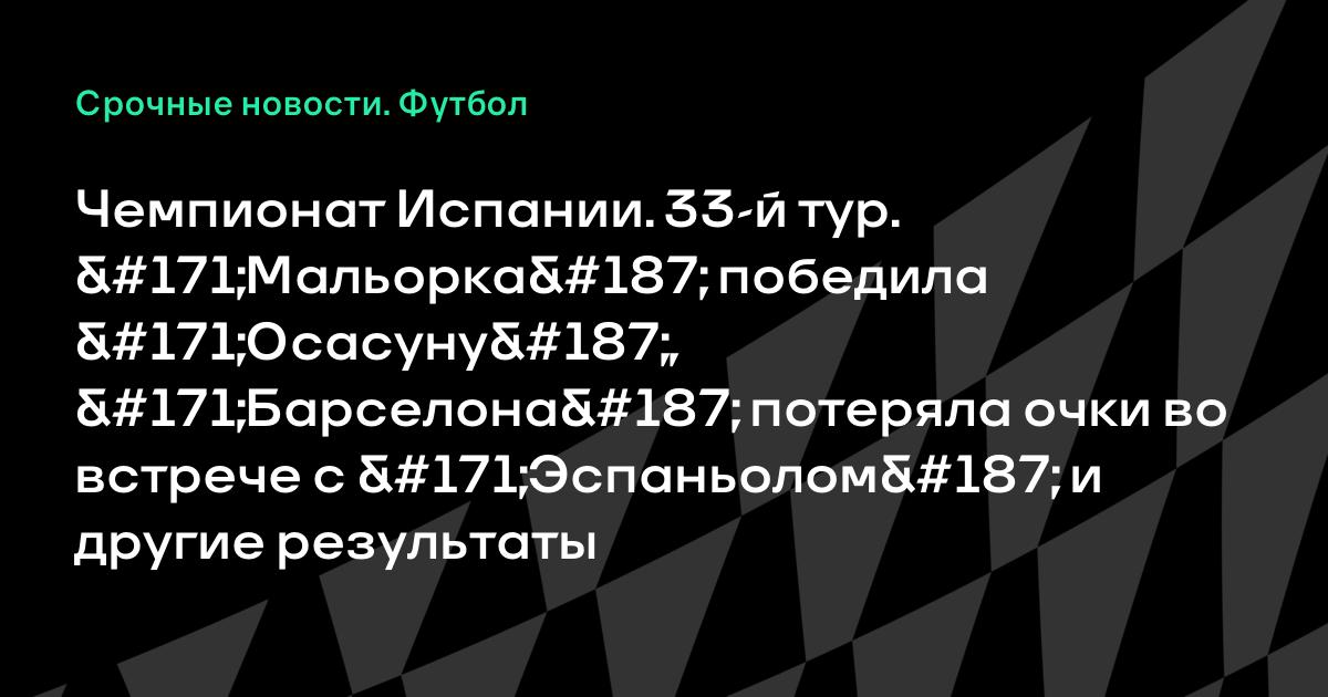 Чемпионат Испании. 33-й тур. «Мальорка» победила «Осасуну», «Барселона» потеряла очки во встрече с «Эспаньолом» и другие результаты