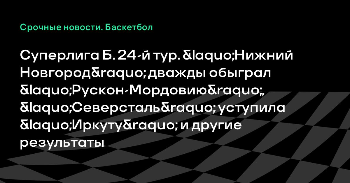 Суперлига Б. 24-й тур. «Нижний Новгород» дважды обыграл «Рускон-Мордовию», «Северсталь» уступила «Иркуту» и другие результаты