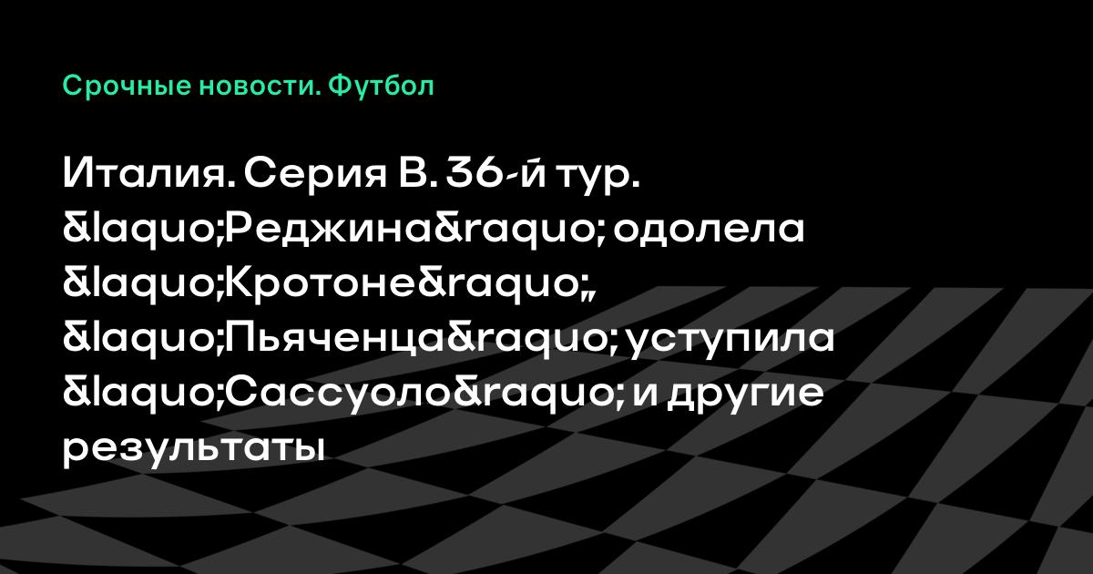 Италия. Серия В. 36-й тур. «Реджина» одолела «Кротоне», «Пьяченца» уступила «Сассуоло» и другие результаты