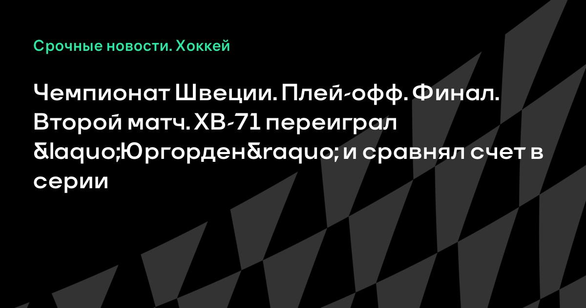 Чемпионат Швеции. Плей-офф. Финал. Второй матч. ХВ-71 переиграл «Юргорден» и сравнял счет в серии