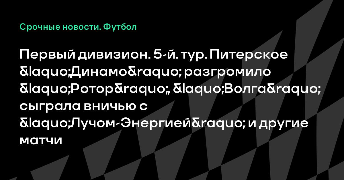 Первый дивизион. 5-й. тур. Питерское «Динамо» разгромило «Ротор», «Волга» сыграла вничью с «Лучом-Энергией» и другие матчи